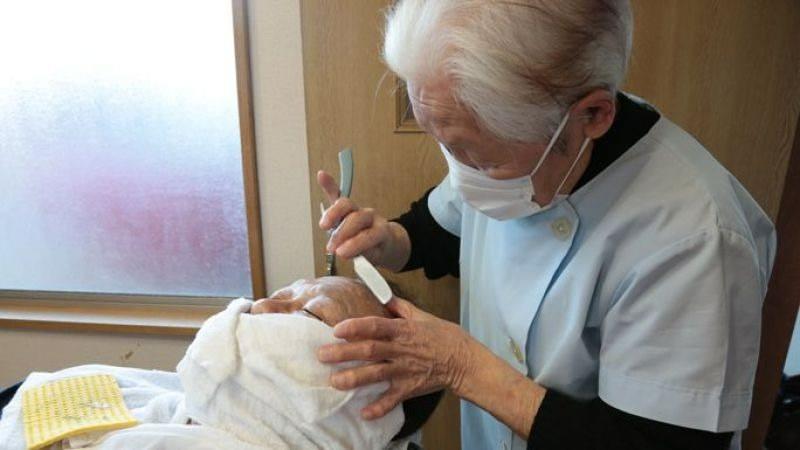 Yaşına karşın saç kesme maharetlerini sürdüren Japon berberin, dizlerindeki ağrı nedeniyle az sayıda müşteri kabul edebildiği bildirildi.