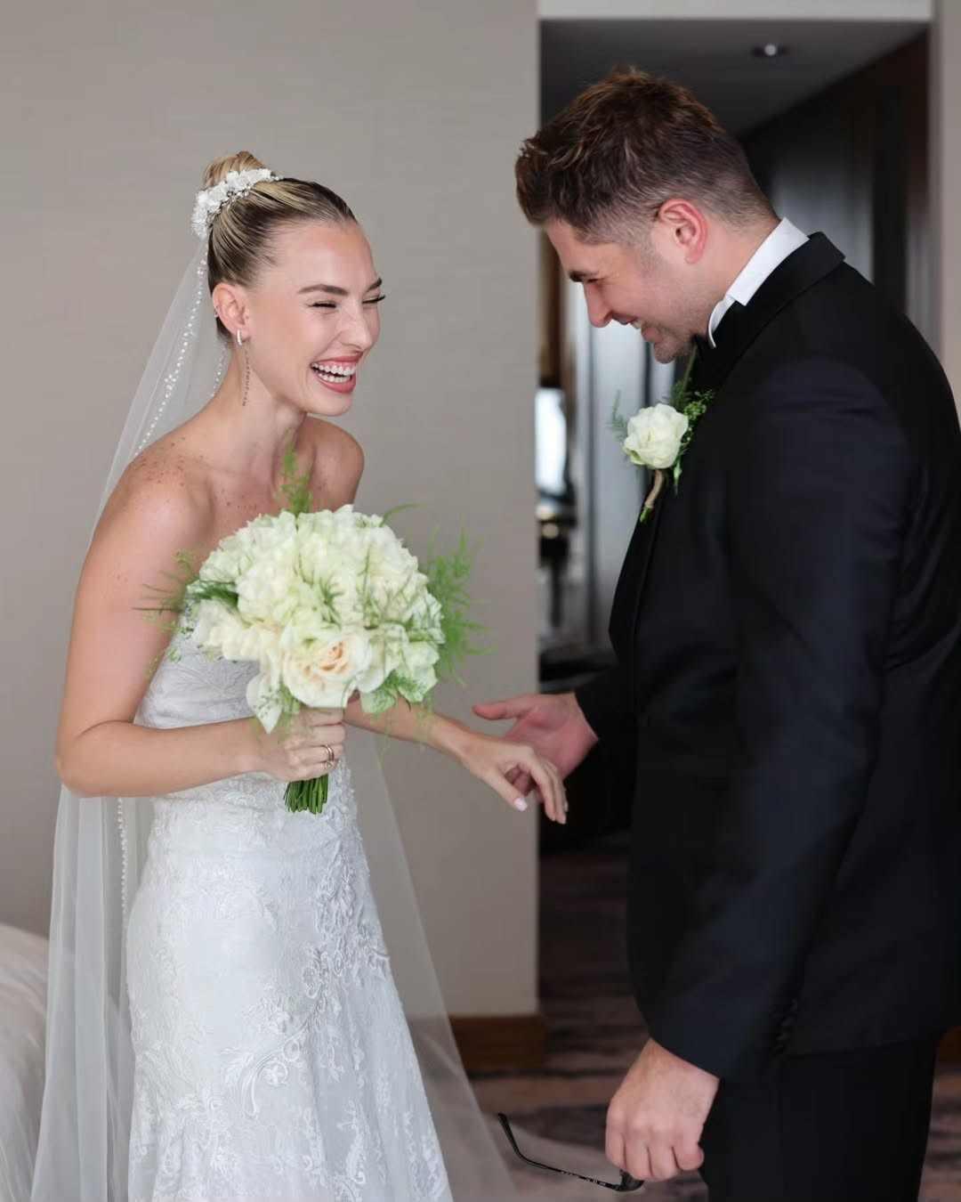 2017 Miss Turkey birincisi Aslı Sümen; geçtiğimiz eylül ayında İngiliz Chris Bann ile Roma’da evlenmişti. Aslı Sümen, düğün merasiminde gelinliği için sade bir tasarım seçmiş, gelinliğine eşlik edecek hafif ve doğal görünümlü bir makyaj tercih etmişti.