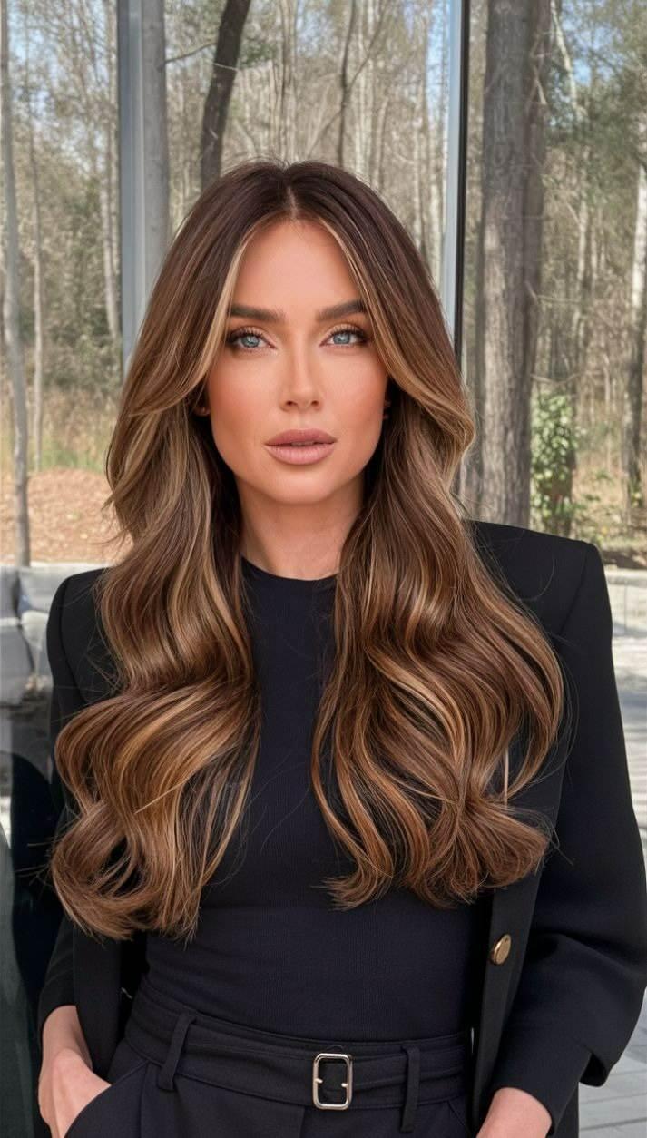 – Caramel & Golden Honey Işıltısı: Karamel balyajlar ve yüz etrafını çerçeveleyen “Golden Honey” tonları, saça ışık katıp doğal bir parlaklık veriyor. Bu yumuşak tonlar, hem sıcak hem de sofistike bir sonbahar tarzına dönüşüyor.