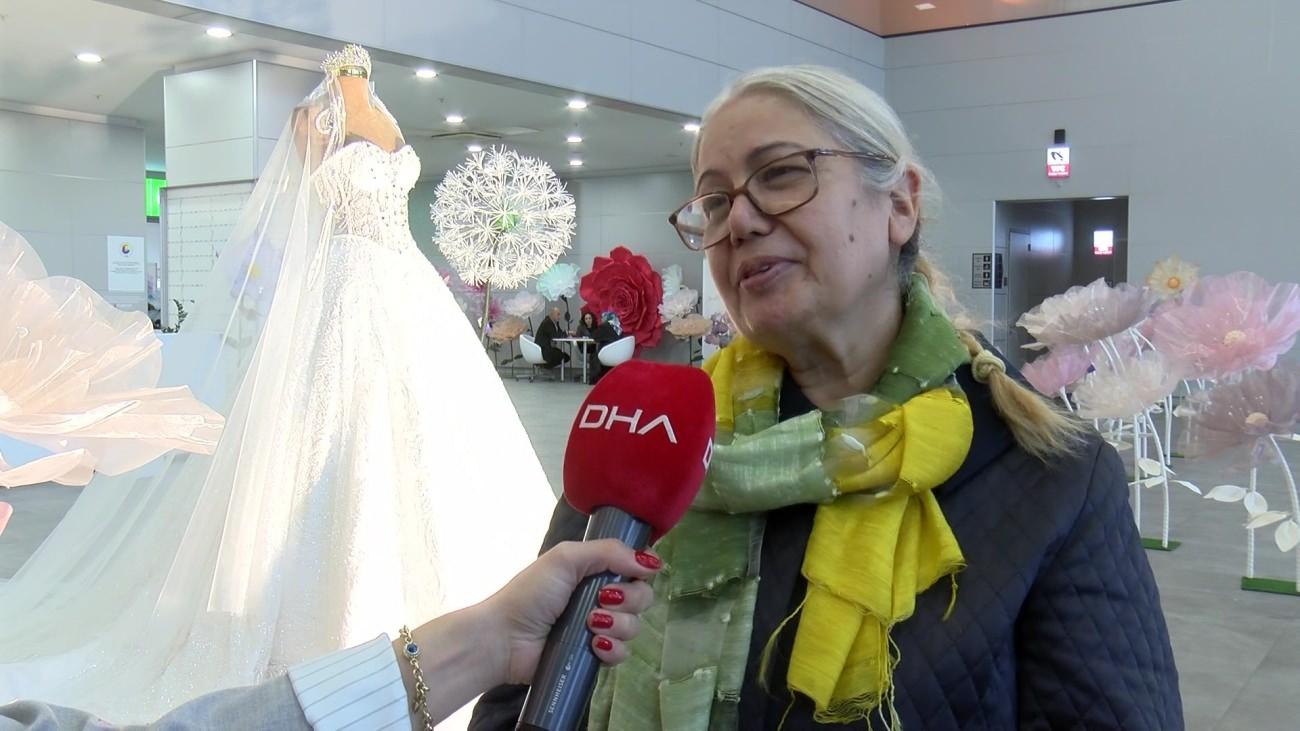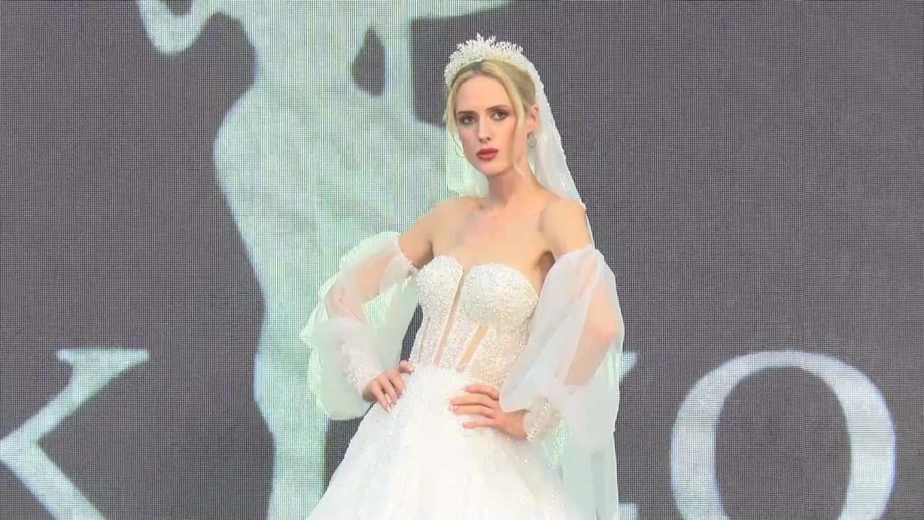 İstanbul gelinlik fuarında 30 kilogram yükündeki gelinlik 1 milyon dolara satılıyor.