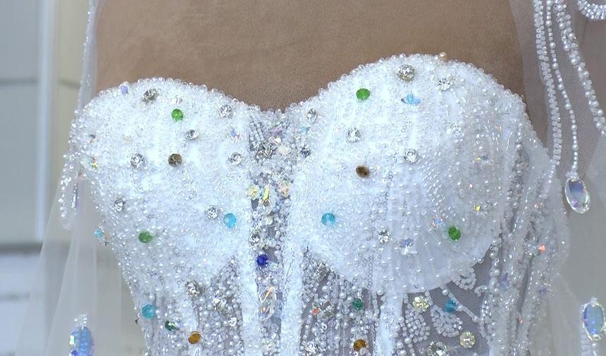 İstanbul Gelinlik Fuarı’nda sergilenen 8 ayda dikilen 30 kilogram tartısındaki bedelli taşlarla işlenmiş gelinlik meşhur oldu.