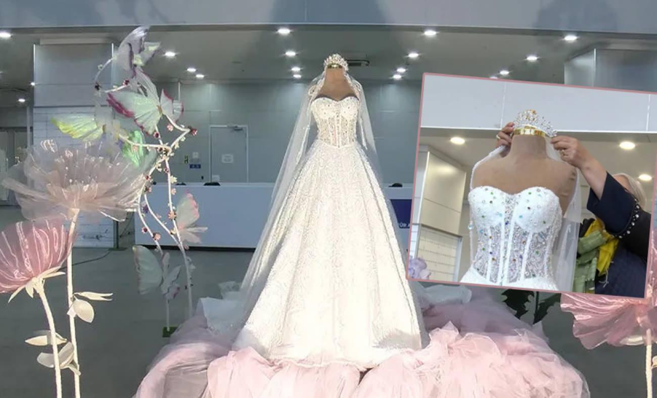 İstanbul’daki gelinlik fuarında birbirinden özel gelinlikler sergileniyor lakin bir tanesi başkalarından çok farklı. Görenin dönüp bir daha baktığı, 8 ayda dikilen, 30 kilogram tartısında olan ve bedelli taşlarla işlenmiş gelinlik 1 milyon dolara satışa çıkarıldı.