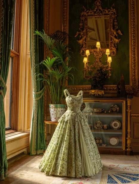 Bir öteki modül ise Norman Hartnell tarafından Kraliçe II. Elizabeth için tasarlanan yeşil parlak elbise. Kraliçe, bu elbiseyi 1957 yılında Washington DC’deki İngiliz Büyükelçiliği’nde Lider Eisenhower için verilen devlet ziyafetinde giymişti.