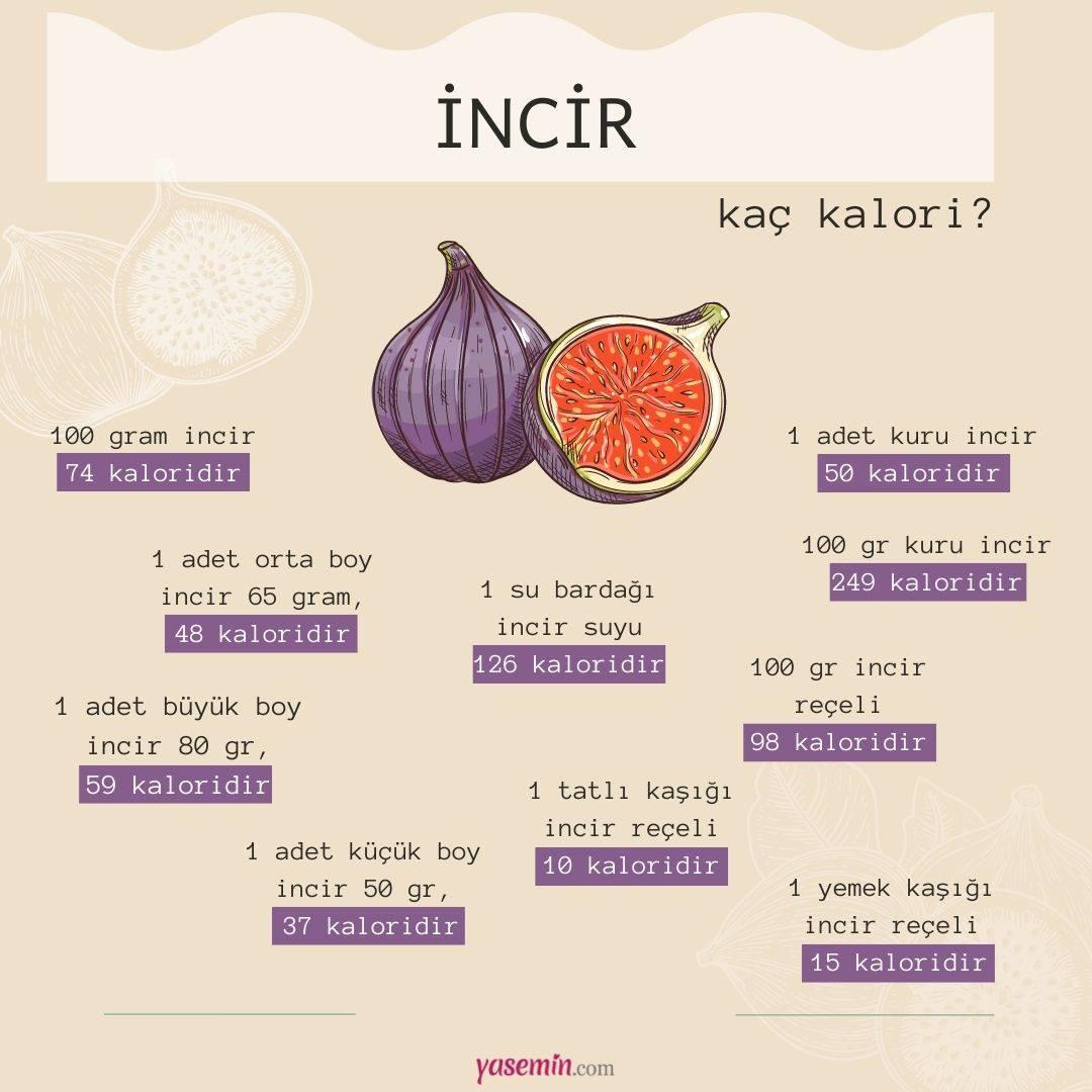 - 1 adet büyük uzunluk incir 80 gr ve 59 kaloridir.