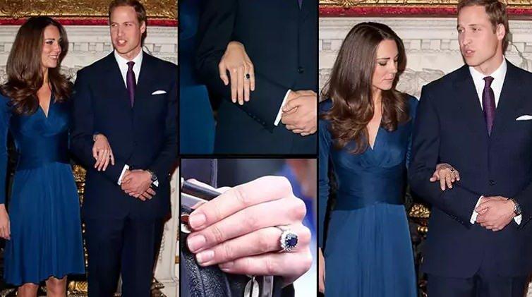 2010 yılında evlilik teklifi alan Kate Middleton’ın parmağındaki yüzük, 18 karatlık beyaz altınla süslenmiş, 14 pırlantayla çevrilmiş oval bir safir yüzük.