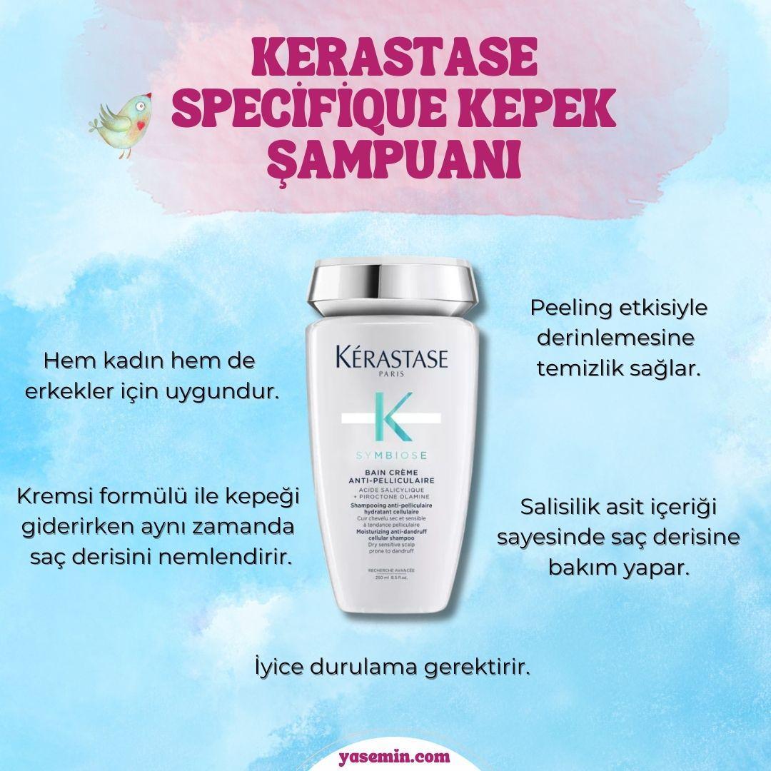 Kerastase Specifique Kepek Önleyici Şampuan yağlı yahut kuru saç derisinde meydana gelen kepek oluşumunun önüne geçerek piyasadaki en düzgün şampuanlar ortasında listenin en başında yer alıyor. Düzenli kullanım sonucu saç derisi sorunları olan kaşıntı, kızarıklık ve kepek problemlerini çözümleyen bu şampuan, saç derisindeki sıkıntıları düzgünleştiriyor, ziyanlı mikroorganizmaları ortadan kaldırıyor. Silikonsuz formülüyle dermatolojik olarak denetim edilen Kerastase Specifique, kısa bir müddet bekleyerek durulamak gerekiyor.