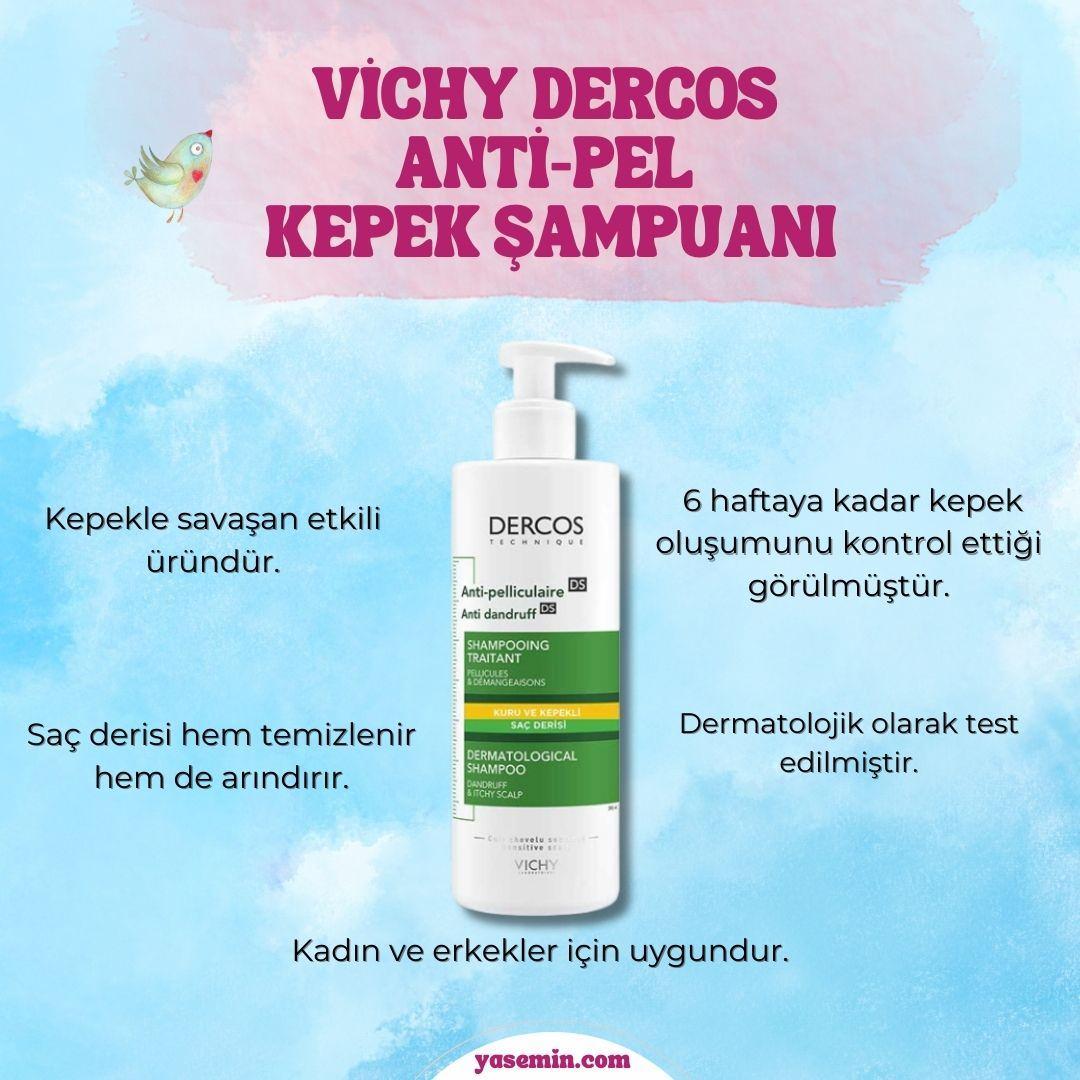 Vichy Dercos Anti-Pel, normal ve yağlı saçlar için özel olarak geliştirilmiştir. Dermatologların da önerdiği bu şampuanın içeriğinde kepeğe karşı en tesirli hususlardan olan selenyum ds ve salisilik asit bulunuyor. Tekrar kepek oluşumunu 6 haftaya kadar denetim ederek, kaşıntı hissini de azaltmaya yardımcı oluyor. İlk kullanımdan sonra tesirli tahlil sunan bu şampuan, saç derisi hem temizlenir hem de arınmış hissedebilirsiniz.