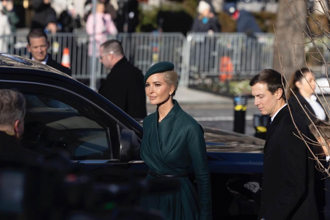 Aynı gün yemin merasimine de katılan İvanka, bu kere yeşil bir kadro elbise giymişti. Siyah kemerli ve asimetrik yakalı ceketi, tıpkı renk beresi ve 5.900 dolarlık Dior çantasıyla şık bir manzara sergiledi.