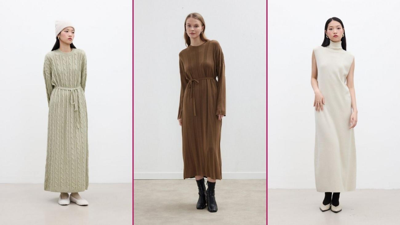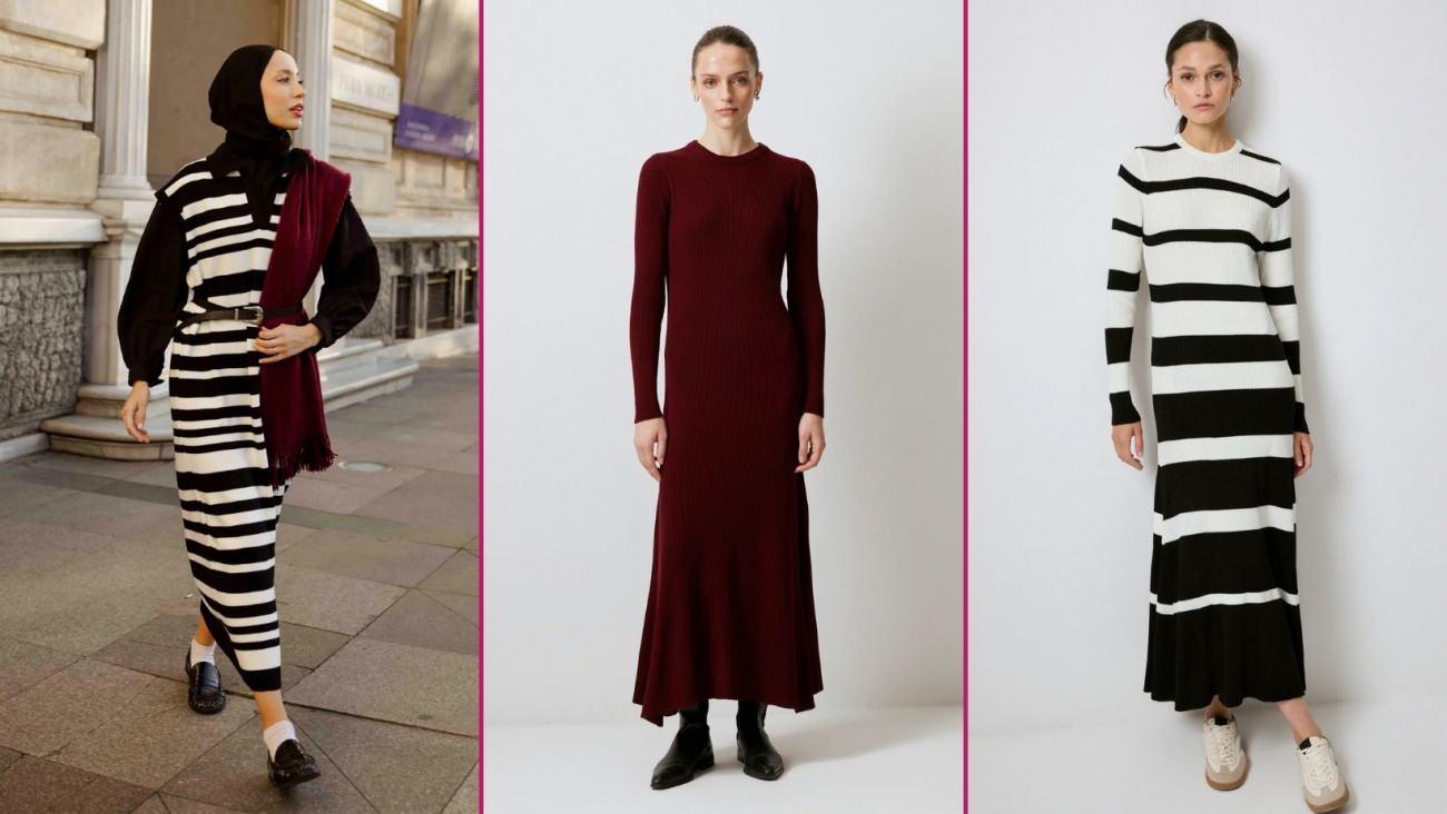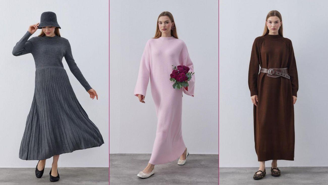 Kış aylarına uygun en hoş triko elbise modelleri 2025