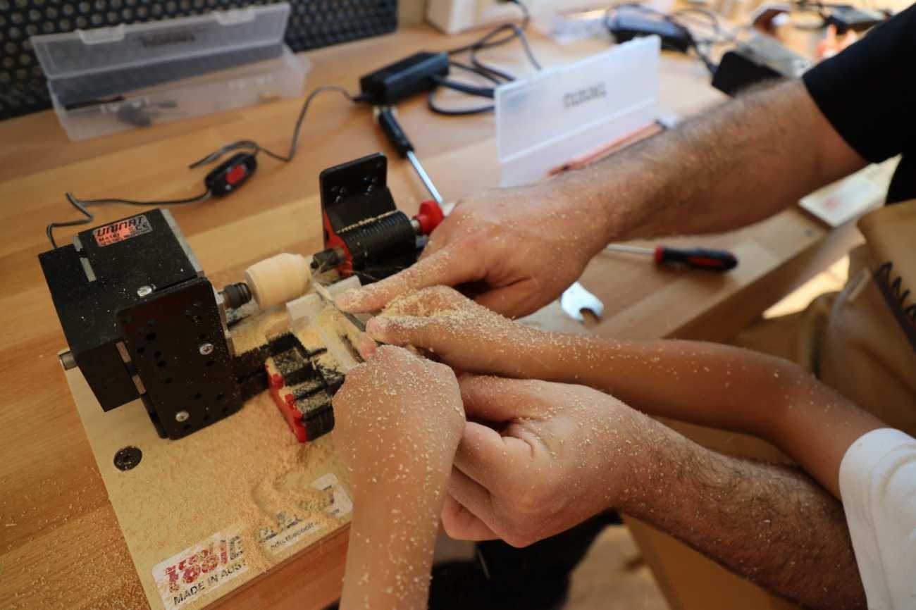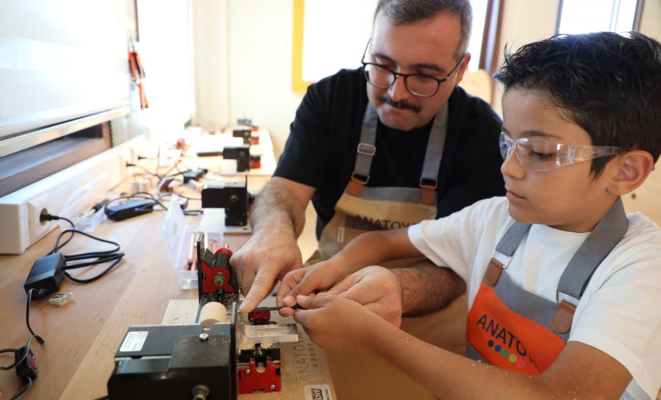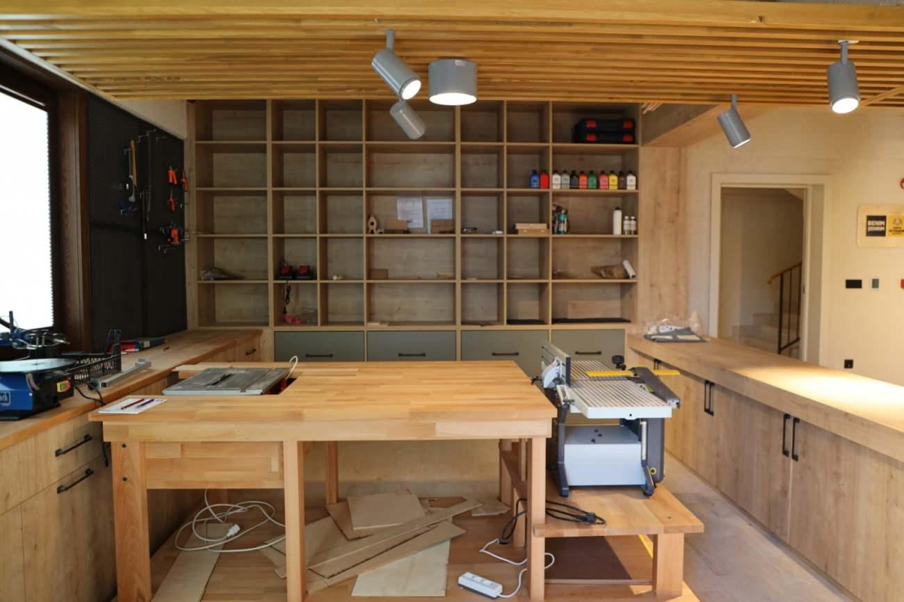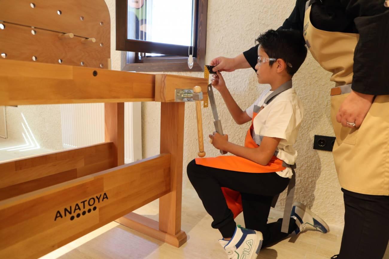 Modern ve inançlı biçimde tasarlanan eğitim alanında, çocuklara uygun kesim makineleri, zımpara ve boyama istasyonları, çalışma tezgâhları üzere ekipmanlar ailelerin rahatça kullanabileceği biçimde yapılandırıldı.