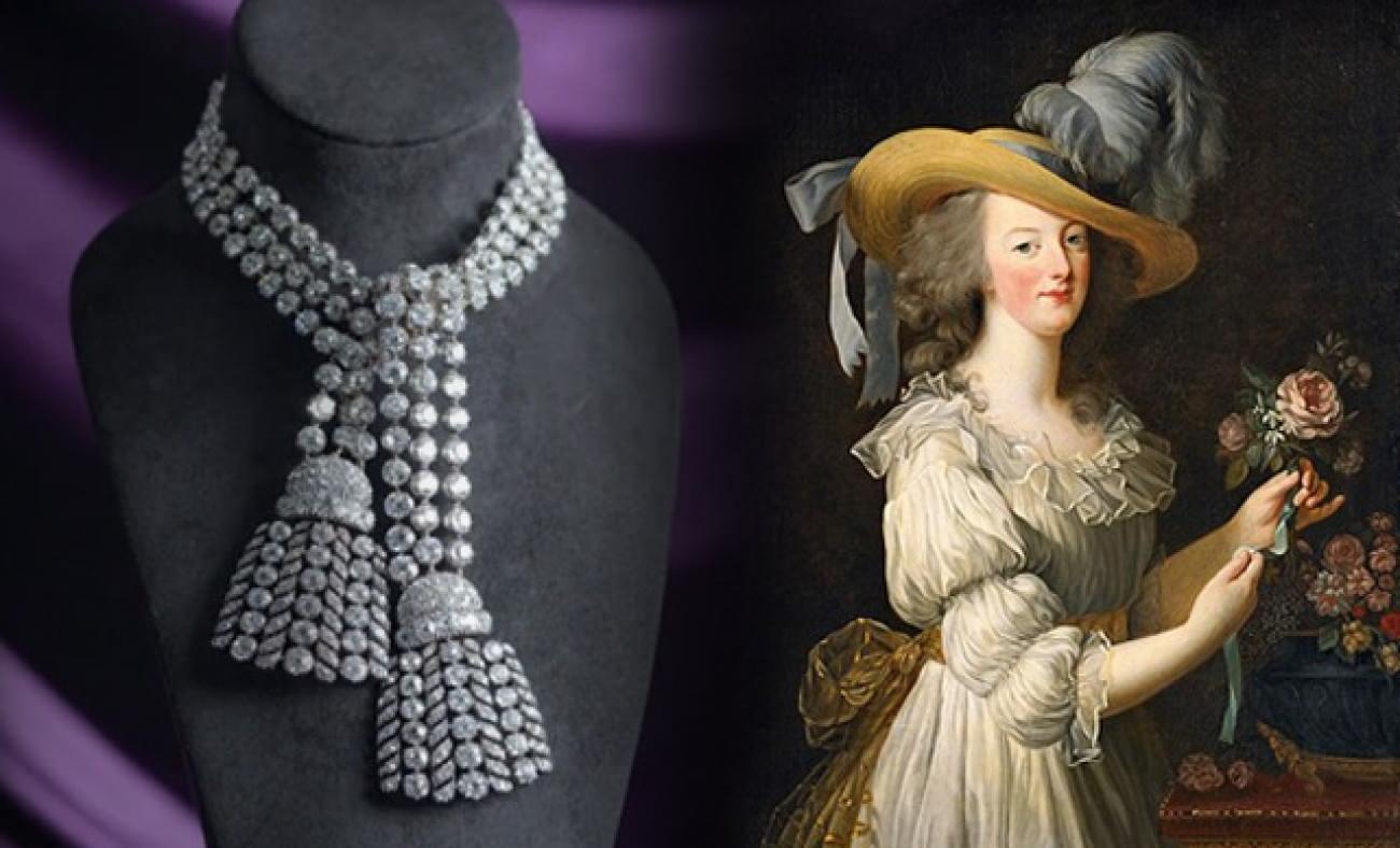 Sevgilisi Madam du Barry için bugün yaklaşık 16.45 milyon euro kıymetinde gösterişli bir elmas kolye sipariş eden Kral XV. Louis, kolyeyi alamadan hayatını kaybetti. Kolyenin Parisli dizayncıları Charles Auguste Böhmer ve Paul Bassenge, Kral Louis’in vefatı hasebiyle kolyeyi satamadı ve büyük bir borca girdi.1784 yılında Jeanne de La Motte isimli bir soylu, Fransa Kraliçesi Antoinette üzere davranarak kolyeyi ele geçirdi. La Motte, kolyeyi kesimlere ayırdı ve elmasları karaborsada satmak için Londra’ya gönderdi.