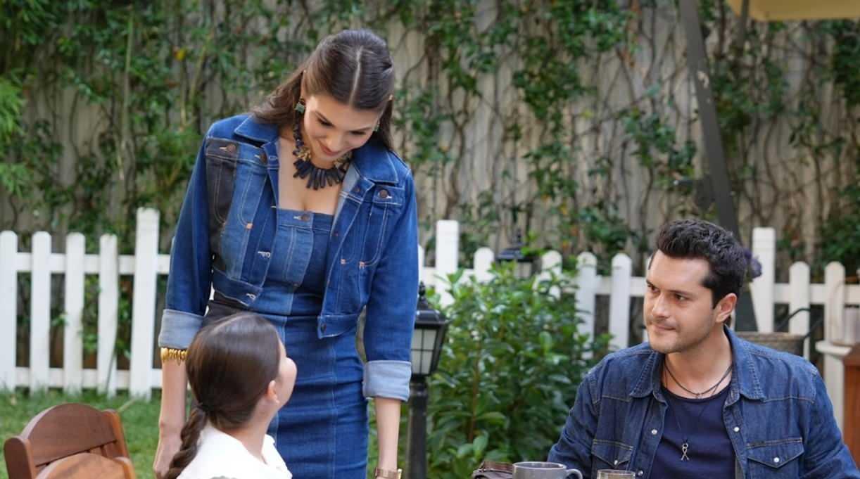 Leyla’nın bu sahnede giydiği triko bluz SHERIN, denim eteği BSL markasına ilişkin. Bluzun fiyatı 439,20 TL eteğin ise 799,99 TL!